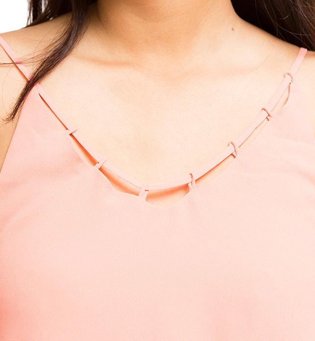 Thiết kế áo 2 dây cổ V đan cách điệu quyến rũ, gợi cảm nhưng vẫn giữ được nét duyên dáng, thùy mị mà không quá hở hang.