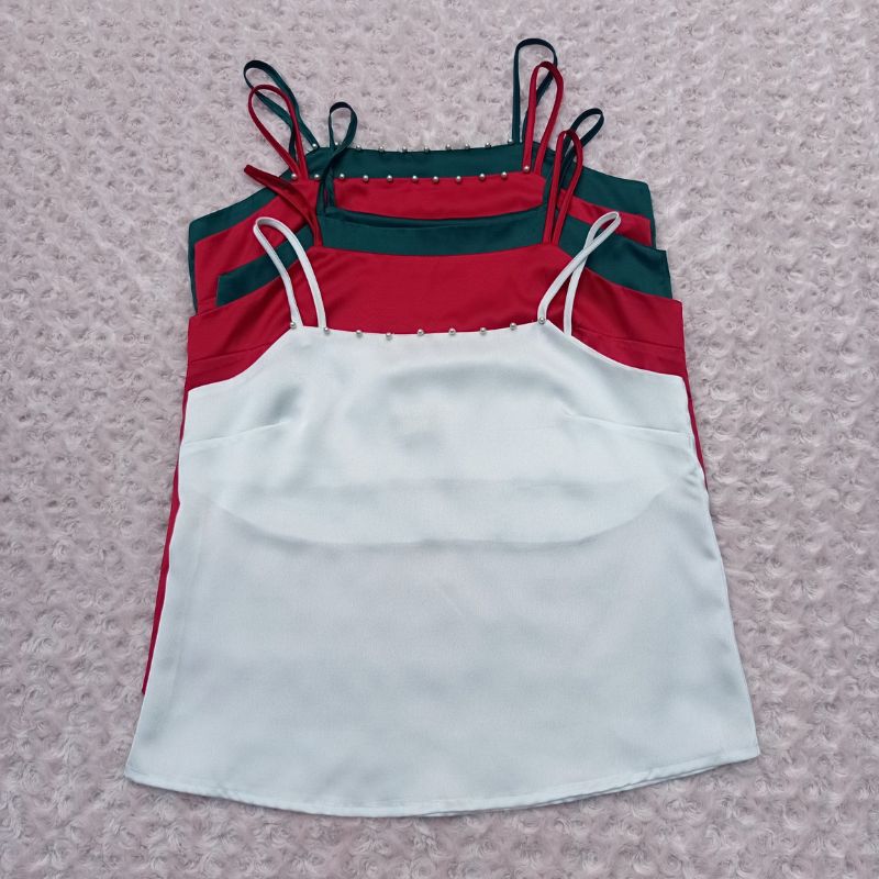 Áo 2 Dây Nữ - Áo 2 Dây Lụa Satin Quai Đính Ngọc Trai