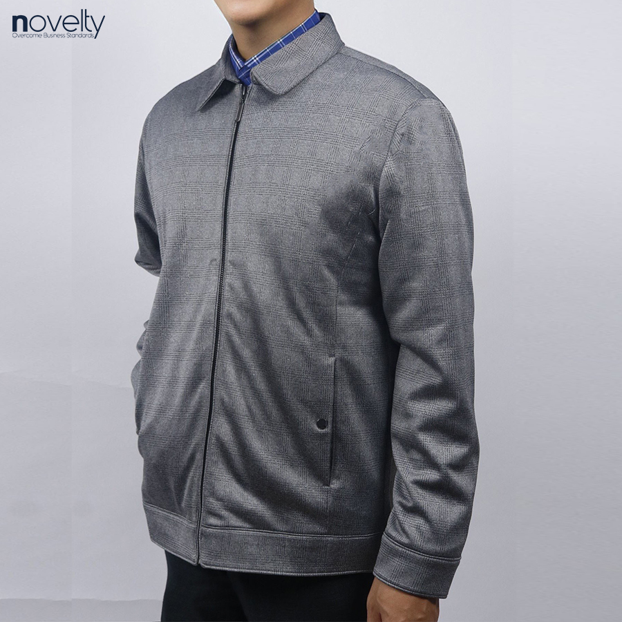Áo Jacket nam 2 lớp cổ bẻ Novelty Casual caro nhỏ xám NJKMCNMT3B2305342