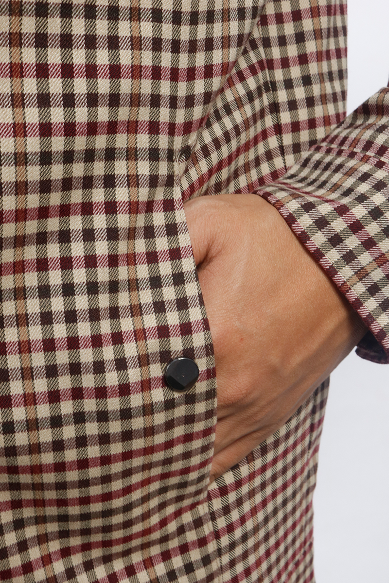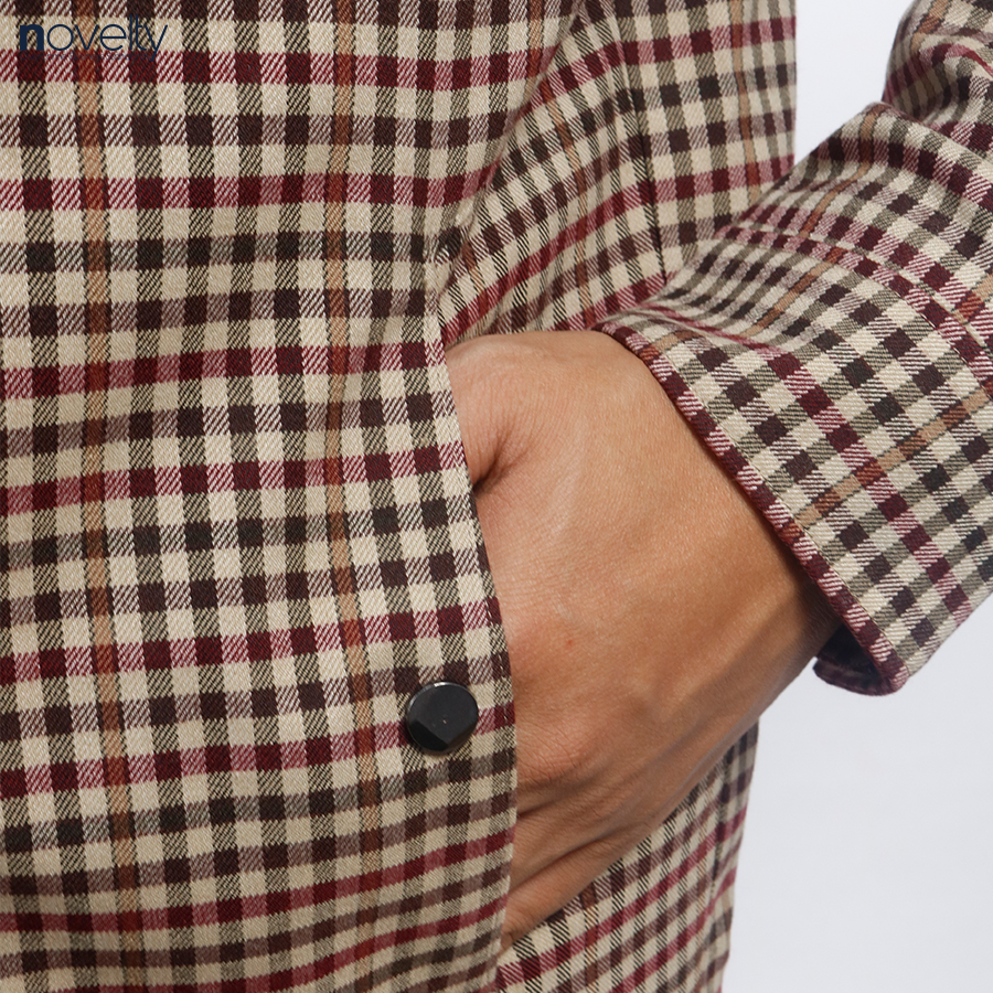 Áo Jacket nam 2 lớp cổ trụ Novelty Casual xanh caro nhỏ màu nâu NJKMCNMT3B2305242