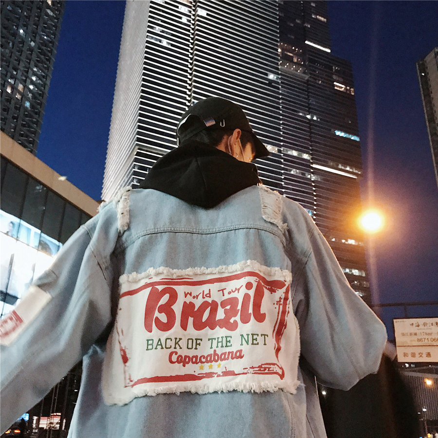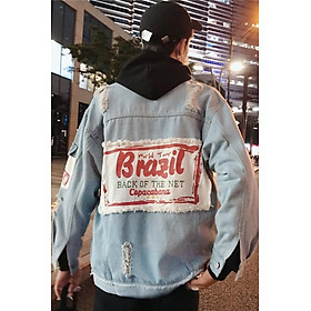 Mua tại Tiktok- Áo khoác jeans nam vá rách in chữ Brazil với chất liệu jeans thô mềm mại giúp bạn thoải mái vận động, thích hợp mặc khoác ngoài giúp tránh nắng, giữ ấm mà vẫn hợp thời trang và phong cách.