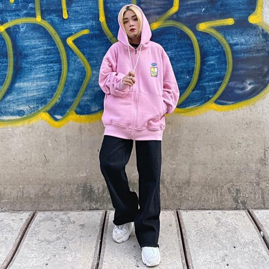 ÁO KHOÁC HOODIE UNISEX FORM RỘNG NỈ KÉO KHÓA DÂY RÚT Chất Liệu: vải nỉ dày dặn, có thấm hút Freesize 40 - 60 kg, dưới 1m63 mặc vừa đẹp Màu sắc: Đen - Hồng