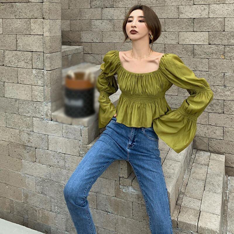 Áo kiểu nữ cổ vuông chất lụa mát màu xanh lá Size: Freesize <60kg Kiểu dáng trẻ trung, hợp thời trang, thanh lịch, nhẹ nhàng. Chất liệu sử dụng từ vải voan cao cấp, mang