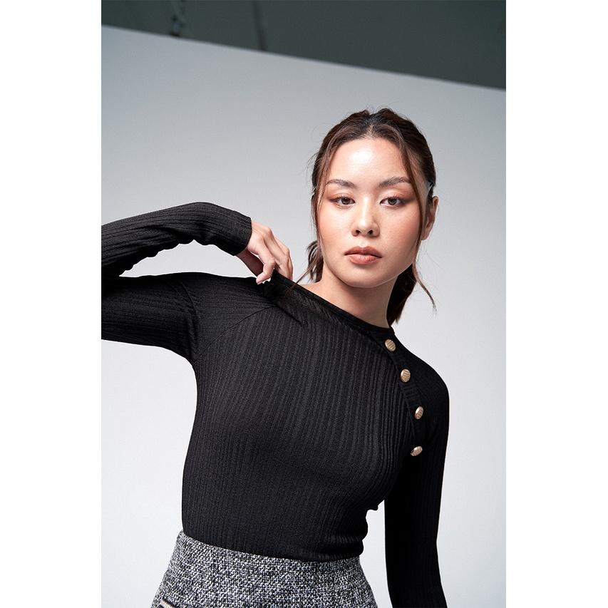 Áo len nữ dài tay dáng ôm điểm nhấn vai đính cúc mạ vàng nổi bật - AD4B241