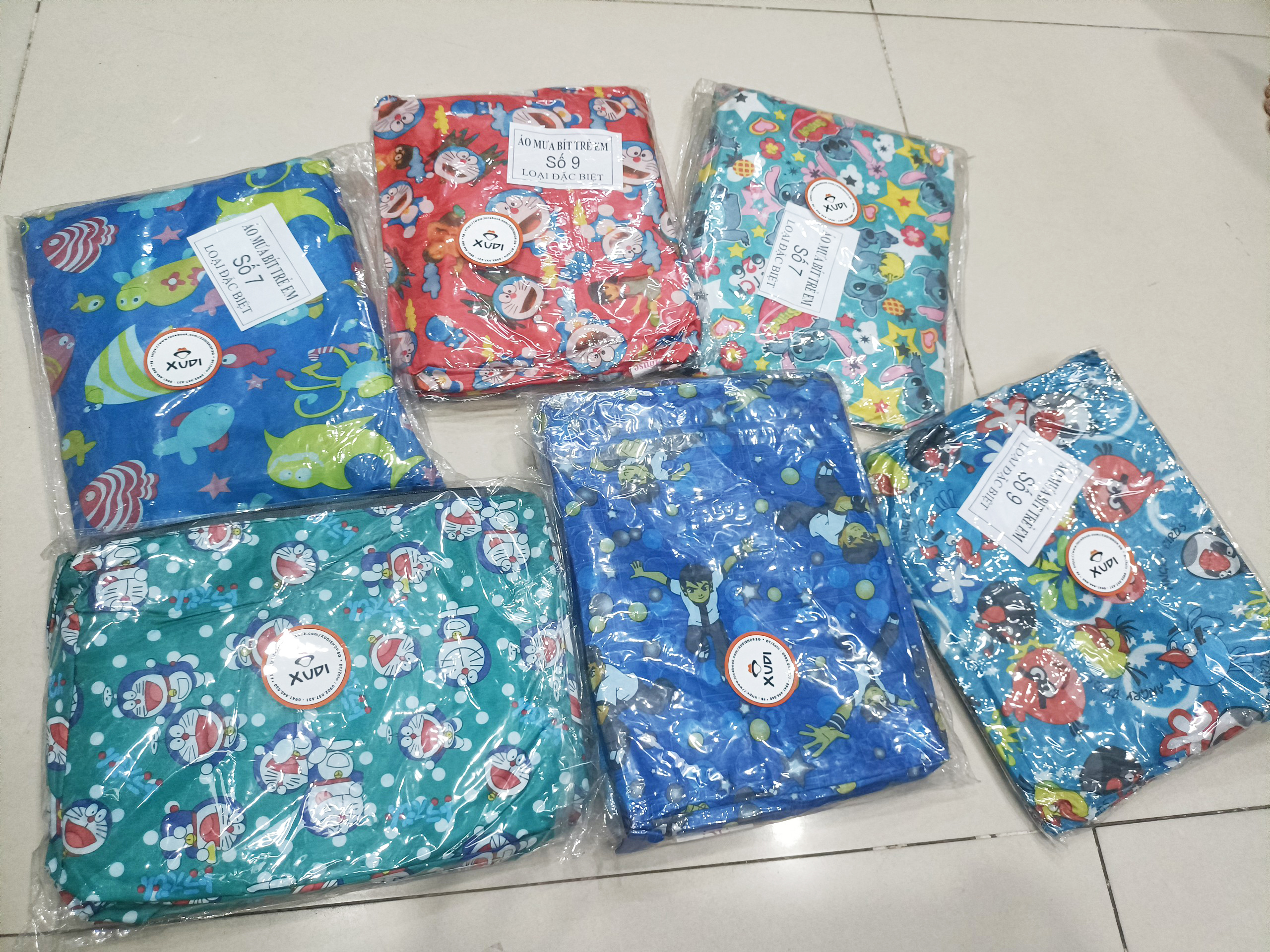 - Áo mưa bít trẻ em cho bé từ 7 - 10 tuổi , vải dù chống thấm phù hợp và tiện lợi cho cả bé trai và bé gái kèm túi đựng cute ,