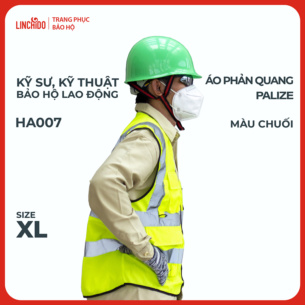✨Áo phản quang Palize với dải Phản quang Poly sáng 5cm màu CHUỐI - Mã HA007