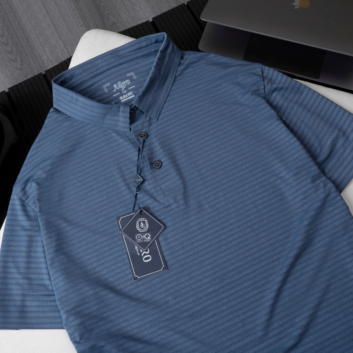 ✨Áo polo golf nam ngắn tay ALIGRO chất vải coolmax màu xanh dệt kẻ ngang năng động ALGPLO119