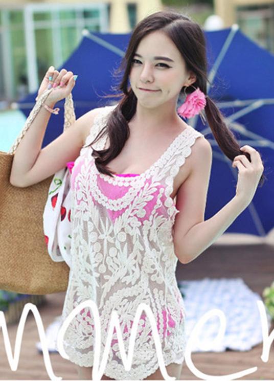 Khi diện những bộ bikini mà phối thêm chiếc áo choàng ren thì các nàng sẽ càng thêm sexy, trẻ trung, năng động và điệu đà lắm đó. Mẫu áo choàng ren với họa tiết
