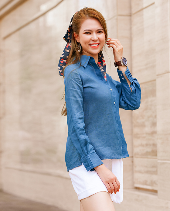 Áo Sơ Mi Linen Baptisia TOP171 Thời trang thiết kế Hity Áo sơ mi mãi mãi là chiếc áo không phân biệt giới tính, độ tuổi, dáng người, công việc, ai cũng cần có một chiếc. Áo sơ mi được định vị là Must-have item (món thiết yếu), nhưng phép biến hình đa dạng từ một chiếc áo sơ mi không chỉ dừng ở mức là chiếc áo cơ bản cần có.  Khi khoác một chiếc áo sơ mi hoàn hảo lên người, nàng sẽ cảm nhận được nhiệt lượng thật sự vô cùng khác biệt từ chất liệu, form dáng, kiểu cổ áo, gấu tay áo và kích cỡ. Trong các chất liệu làm nên chiếc áo sơ mi đẹp, Linen là chất liệu luôn đứng đầu bảng xếp hạng. Thức vải Linen mang đến form dáng áo đứng, sang trọng mà tràn đầy năng lượng phóng khoáng, tự do. Áo sơ mi Linen mang đến trải nghiệm sáng tạo cho người mặc khi có thể phối với quần, váy, jeans, skinny, hoặc mặc khoác ngoài chiếc đầm mini hoặc midi.  Trong vô vàn sắc màu của nhân loại, Xanh Chàm (Indigo) chiếm vị trí rất quan trọng trong bảng phối màu thời trang, nội thất vì những ý nghĩa và cảm xúc tốt đẹp mà nó mang lại: cảm giác bình yên, thanh thản cho tâm trí, niềm tin và sự chia sẻ. Trầm tĩnh và nhẹ nhàng, Xanh Chàm Indigo mang lại sự cân bằng hài hoà cho tổng thể trang phục, truyền tải thông điệp "Tôi là người đáng tin cậy" từ người mặc đến mọi người chung quanh.  Áo sơ mi form suông Cổ sơ mi Tay dài, cổ tay cao 7cm, xếp ly Cài bằng hàng nút vỏ sò phía trước CHẤT LIỆU Linen  Cắt may thủ công tinh tế tại Nha Trang, Việt Nam Linen hay Lanh là một trong những chất liệu lâu đời nhất ở trên thế giới. Tên gọi “linen” có nguồn gốc từ “linum” (tiếng Latin) hoặc “linon” (tiếng Hy Lạp), từ “lanh” trong tiếng Việt bắt nguồn từ “lin”trong tiếng Pháp. Vải linen được dệt từ sợi của cây lanh tự nhiên. Người ta lấy thân cây lanh – loại cây có nguồn gốc gần các hồ nước ở Thụy Sĩ tách nhỏ thành các sợi và dệt thành vải. Các sợi vải được dệt chặt tay và tương đối to, có thể nhìn thấy từng sợi trên bề mặt vải cũng như cảm nhận bằng tay rất rõ rệt. Sợi cây lanh rất sắc nhưng lại dễ dàng bị hư hỏng trong quá trình thu hoạch, do đó để có thể thu hoạch được sợi lanh phải đòi hỏi các kỹ thuật và công nghệ tiên tiến. Những người thợ sẽ tước các cây lanh vừa thu hoạch được thành những sợi dài. Cách nhanh nhất là sử dụng vi khuẩn để chúng có thể ăn hết phần thân cây bên ngoài. Sau đó những sợi mềm này sẽ được tập hợp lại và tách thành các sợi dài, từ những sợi dài này mà họ có thể dệt chúng được thành vải. Vải linen tự nhiên đặc biệt an toàn, thân thiện với người sử dụng. Vải có độ bền cao hơn rất nhiều so với các loại vải khác, lên tới khoảng 5,5 đến 6,5 gm/den (đơn vị đo độ bền của vải). Vải linen cũng có khả năng thấm hút tốt và bay hơi nhanh, giúp cho bề mặt vải khô ráo một cách tự nhiên và nhanh chóng, tạo cảm giác thoải mái khi sử dụng. Đặc biệt, vải linen còn có khả năng chịu nhiệt tốt, có thể phơi trực tiếp dưới ánh nắng mặt trời. Với một số loại vải khi phơi phóng dưới điều kiện nhiệt độ cao sẽ làm vải bị phai màu. Nhưng vải linen lại hoàn toàn ngược lại. Một đặc điểm quan trọng nhất, vải linen nhẹ, chất vải mát, sờ cực thích. Hầu hết khi lựa chọn quần áo mùa hè, người ta hay chọn chất liệu vải không dệt linen vừa bền vừa thoáng mát. Độ bóng mượt tự nhiên tạo cảm giác sang trọng, thậm chí chỉ cần chạm tay vào sờ sẽ cảm nhận được sự mát lạnh của vải, và nhìn bằng mắt cũng cảm thấy chiếc áo từ vải linen nổi bật hơn hẳn những loại vải khác. Vì là sợi tự nhiên nên linen có độ co giãn thấp, từ đó vải có thể xuất hiện những nếp nhăn, nếp gấp trên bề mặt vải chúng ta sử dụng và bảo quản không đúng cách. Vải linen có nguồn gốc thiên nhiên thân thiện với môi trường. Thân thiện làn da cũng như dễ phân hủy khi không còn sử dụng nữa.  Tại Hity, chúng tôi không ngừng nỗ lực tìm kiếm và ứng dụng các chất liệu có độ an toàn và lành mạnh cho sức khoẻ, thân thiện với làn da, giảm tối đa chất thải nilon nhằm mục đích giảm thiểu tác động của quá trình sản xuất hàng dệt may tới môi trường. Chúng tôi không sử dụng chất liệu có nilon trong tất cả các sản phẩm của mình. Hity sử dụng túi zip tái sử dụng để lưu trữ hàng hoá trong kho, thay vì mỗi sản phẩm lấy ra khỏi kho lại kèm theo một túi nilon thải đi, chúng tôi sử dụng lại túi zip tối thiểu 3 năm. Các bao bì của Hity được tái sản xuất từ vải thừa sau cắt, làm nên những chiếc túi vải xinh xắn và thân thiện. Chúng tôi khuyến khích khách hàng tái sử dụng những chiếc túi vải Hity trong sinh hoạt hằng ngày như đi siêu thị, đi mua sắm, đi du lịch. Hity không in logo trên túi nên quý khách hàng sẽ không e ngại rằng chúng tôi quảng cáo qua việc tặng túi. Chúng tôi đ