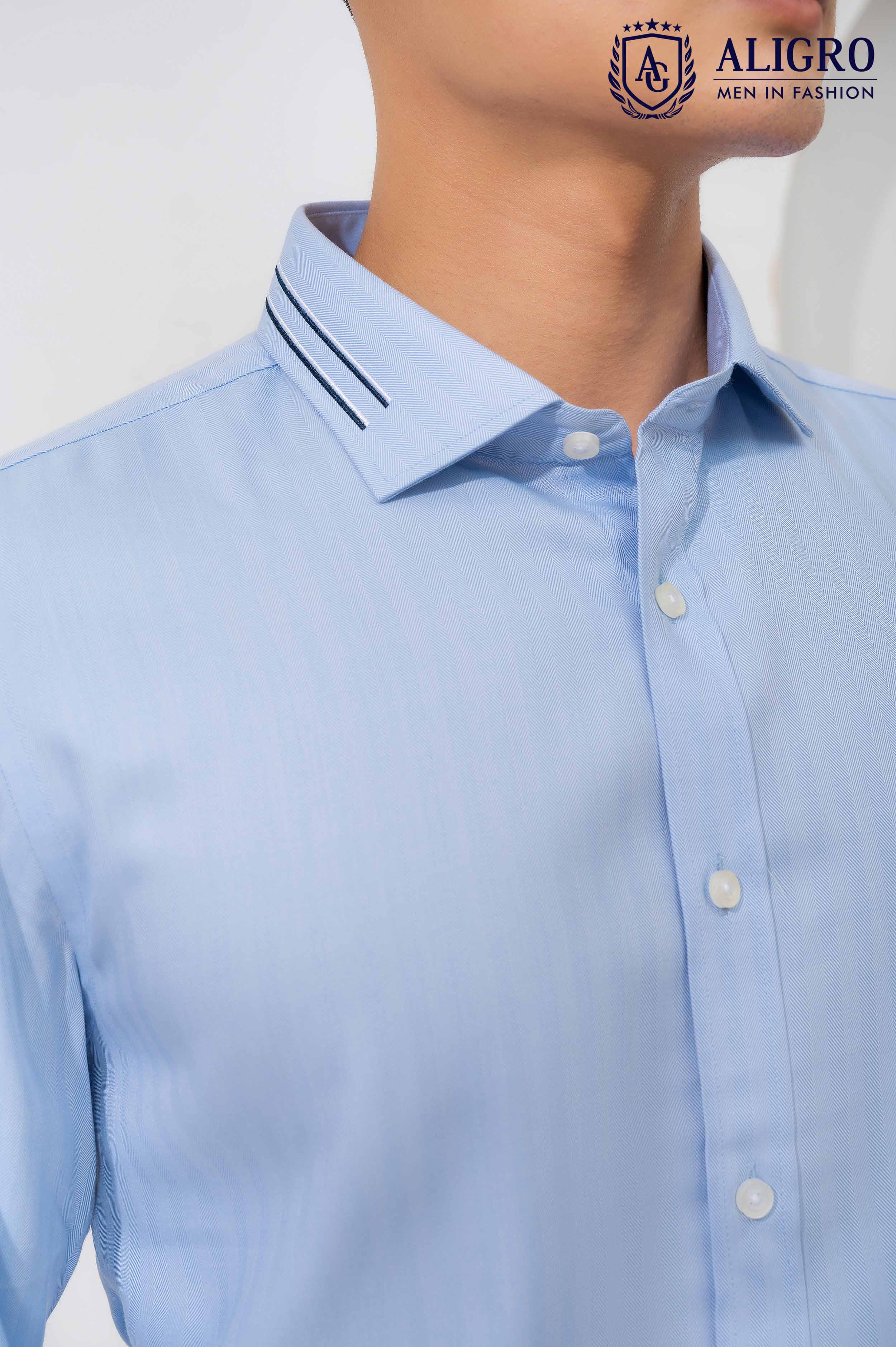 ✨Áo sơ mi nam dài tay ALIGRO 100% chất bamboo Màu Xanh phối cổ bẻ dáng ôm body ALGS214