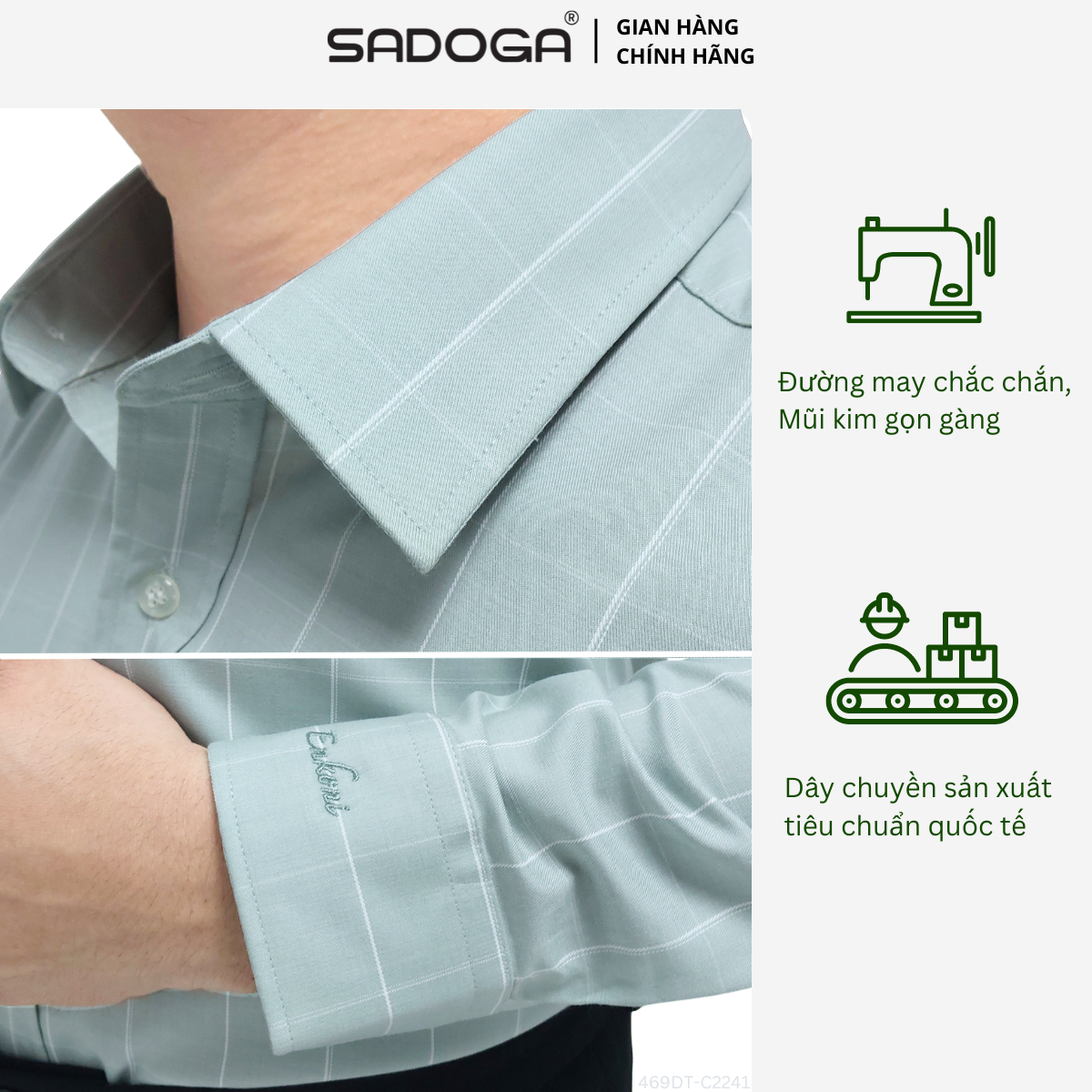 Áo sơ mi nam trung niên, Áo sơ mi nam công sở Anton, Áo sơ mi nam dài tay họa tiết caro xanh Vải cotton thoáng mát, thấm hút tốt, mềm mịn không xù Qúy
