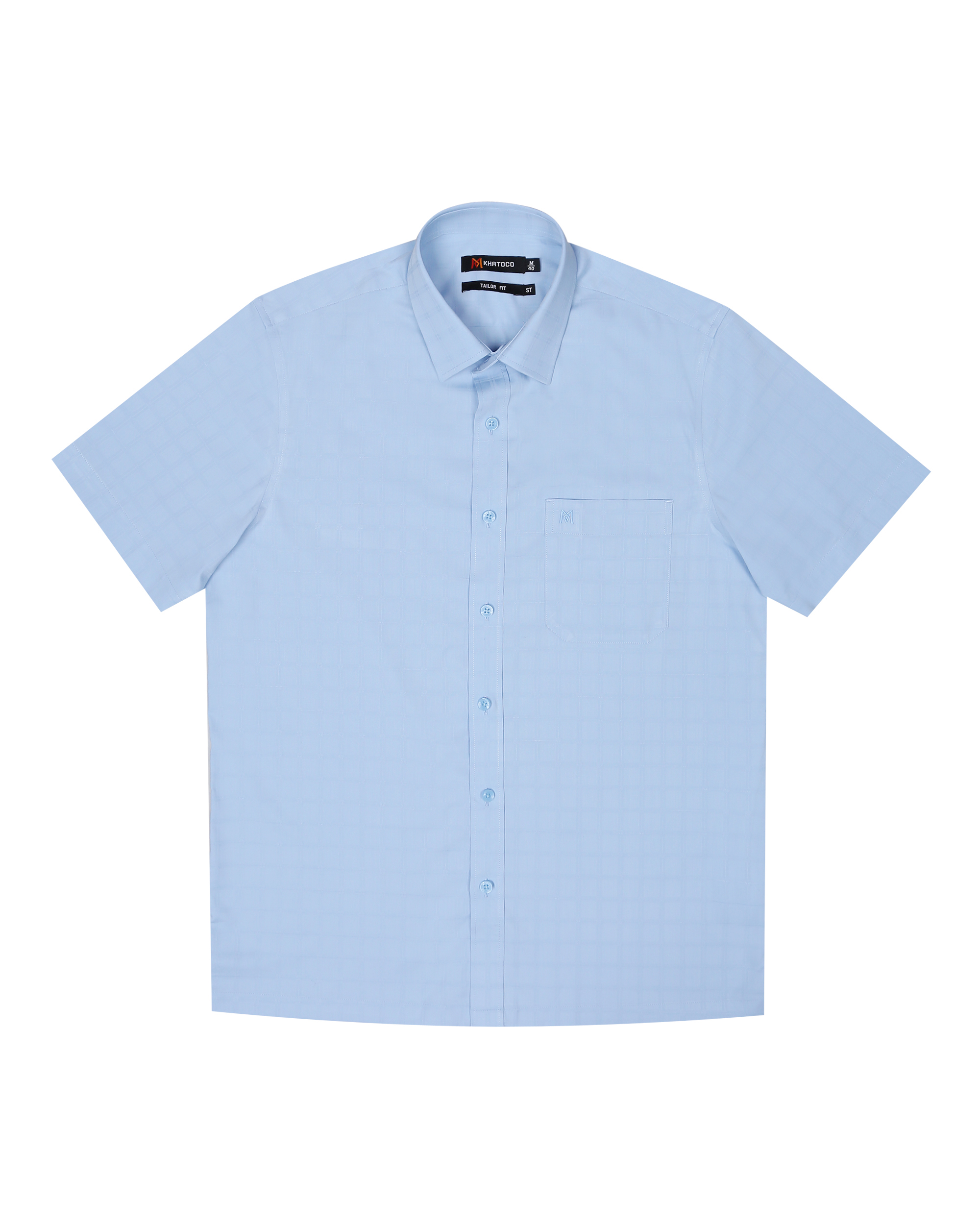 Áo sơ mi nam tay ngắn lai ngang – Khatoco - Mã hàng: A1MN538T2 - Chất liệu: 75% Polyester + 22% Viscose (Bamboo) + 3% Spandex → Vải mềm mại, thoáng mát, co giãn nhẹ,