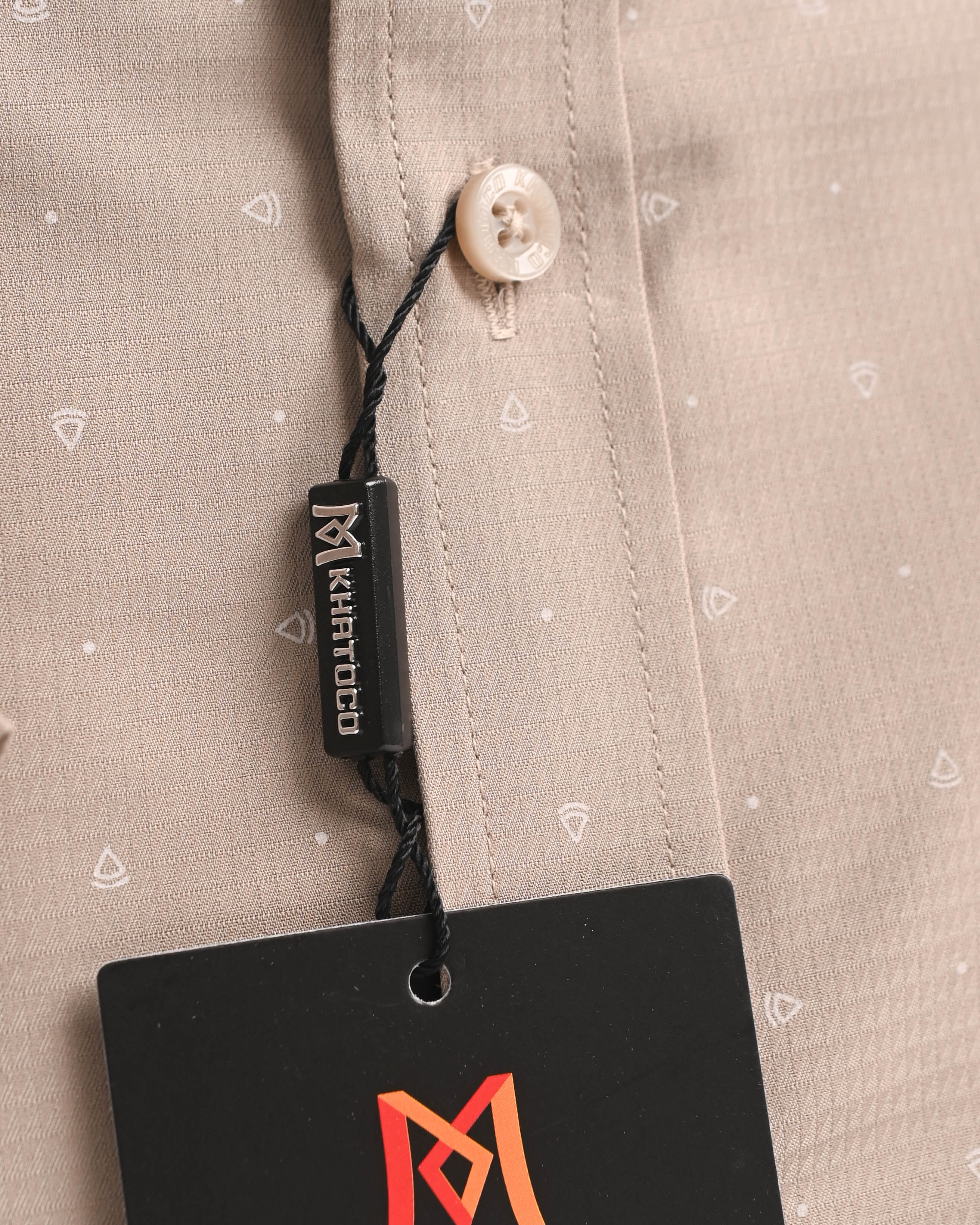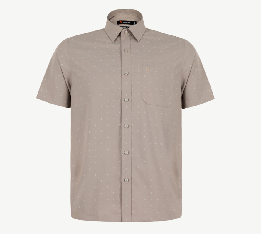ÁO SƠ MI NAM TAY NGẮN KHATOCO - TAILOR FIT Kiểu dáng: Tailor Fit - Ôm nhẹ, tôn dáng, lịch sự Màu sắc: Be sáng (họa tiết tam giác nhỏ trắng, tinh tế) Size: L – XL – 2XL ️ Thương hiệu: KHATOCO – Hàng Việt Nam chất lượng cao