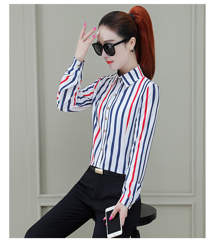 Áo Sơ Mi Sọc Hana Size S M L XL Phom dáng chuẩn đẹp, Chất liệu: VẢI dày dặn, dễ chịu, Là mẫu thiết kế có đường kim mũi chỉ sắc xảo, chị em công sở không