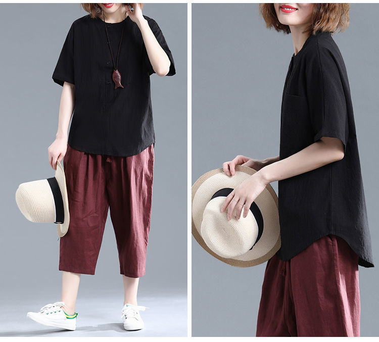 - Tên sản phẩm: Áo sơ mi nữ kiểu tay ngắn cổ tròn, chất liệu Đũi tơ thấm hút mồ hôi, áo sơ mi form rộng nhiều màu.