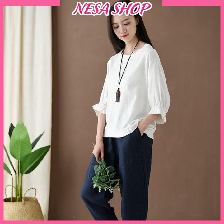 Áo sơ mi nữ kiểu tay lỡ NeSa Shop, chất liệu Đũi tơ thấm mồ hôi, áo kiểu form rộng phong cách Hàn Quốc, AKH.45