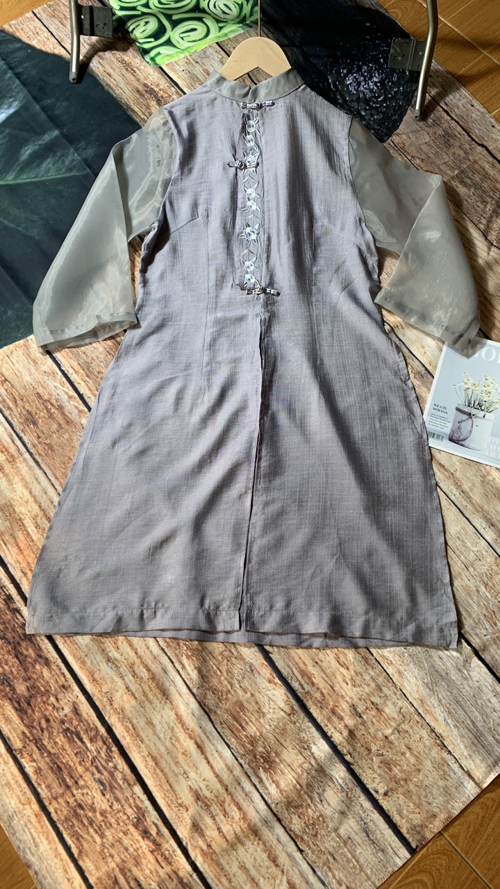 Áo sơ mi váy dáng dài, chất liệu đũi mềm mịn, áo dài cách tân nữ, form dài rộng kiểu Hàn Quốc.