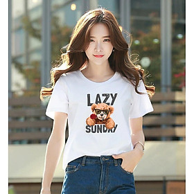 ✨Áo thun nữ cổ tròn form rộng in hình gấu dễ thương thun cotton 4 chiều từ 45-60kg ( ANU080 )