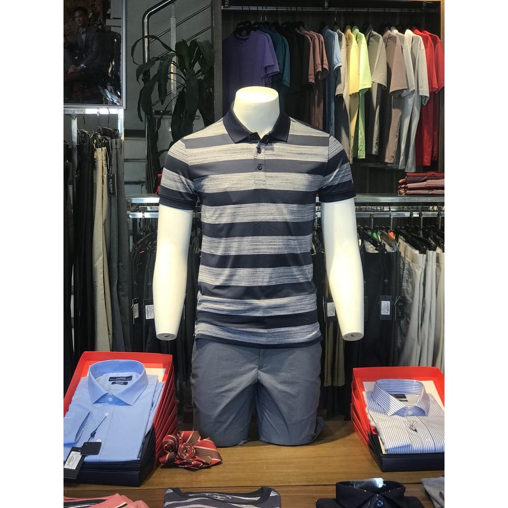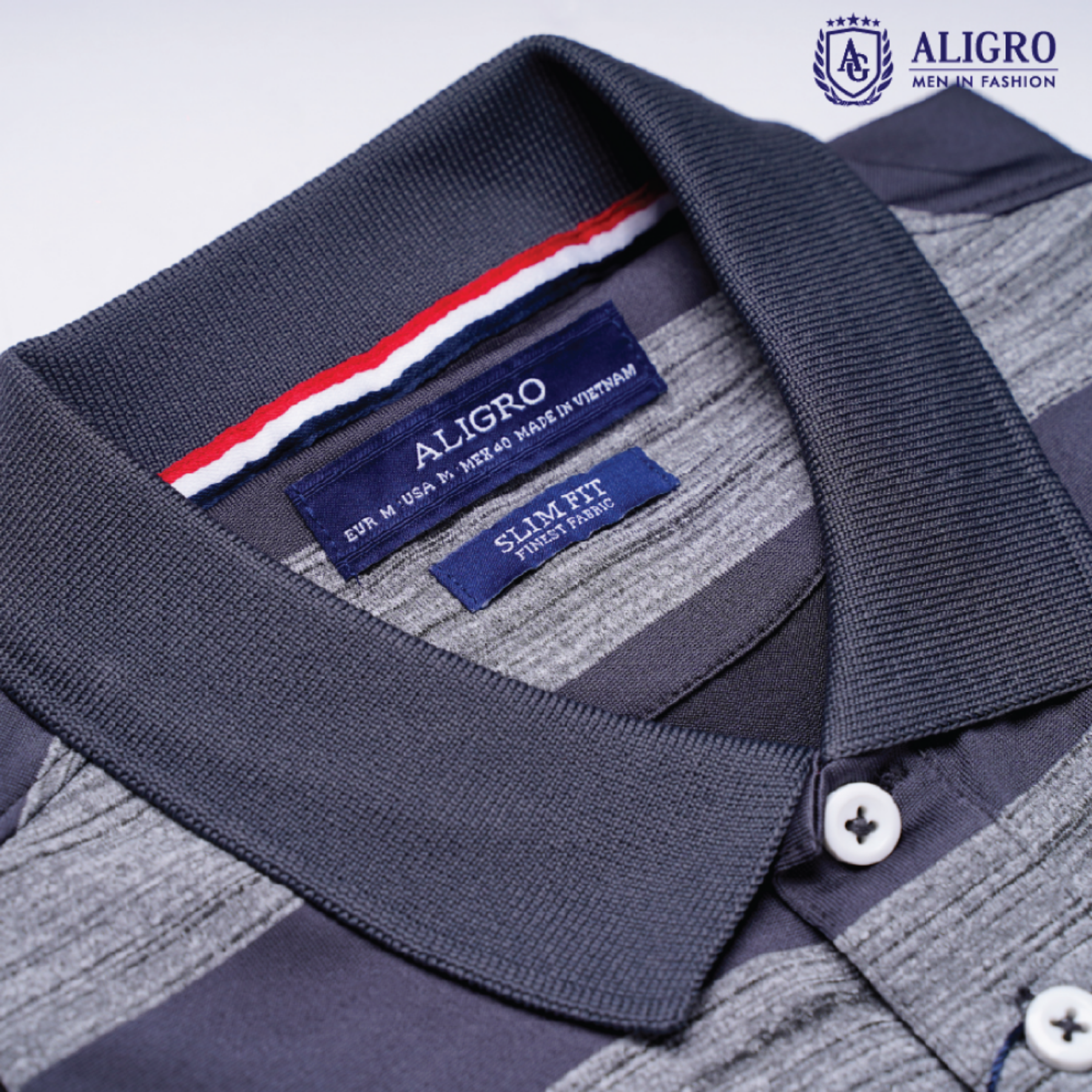 ✨Áo thun polo nam cộc tay kẻ ngang màu xám aligro ALGPLO58