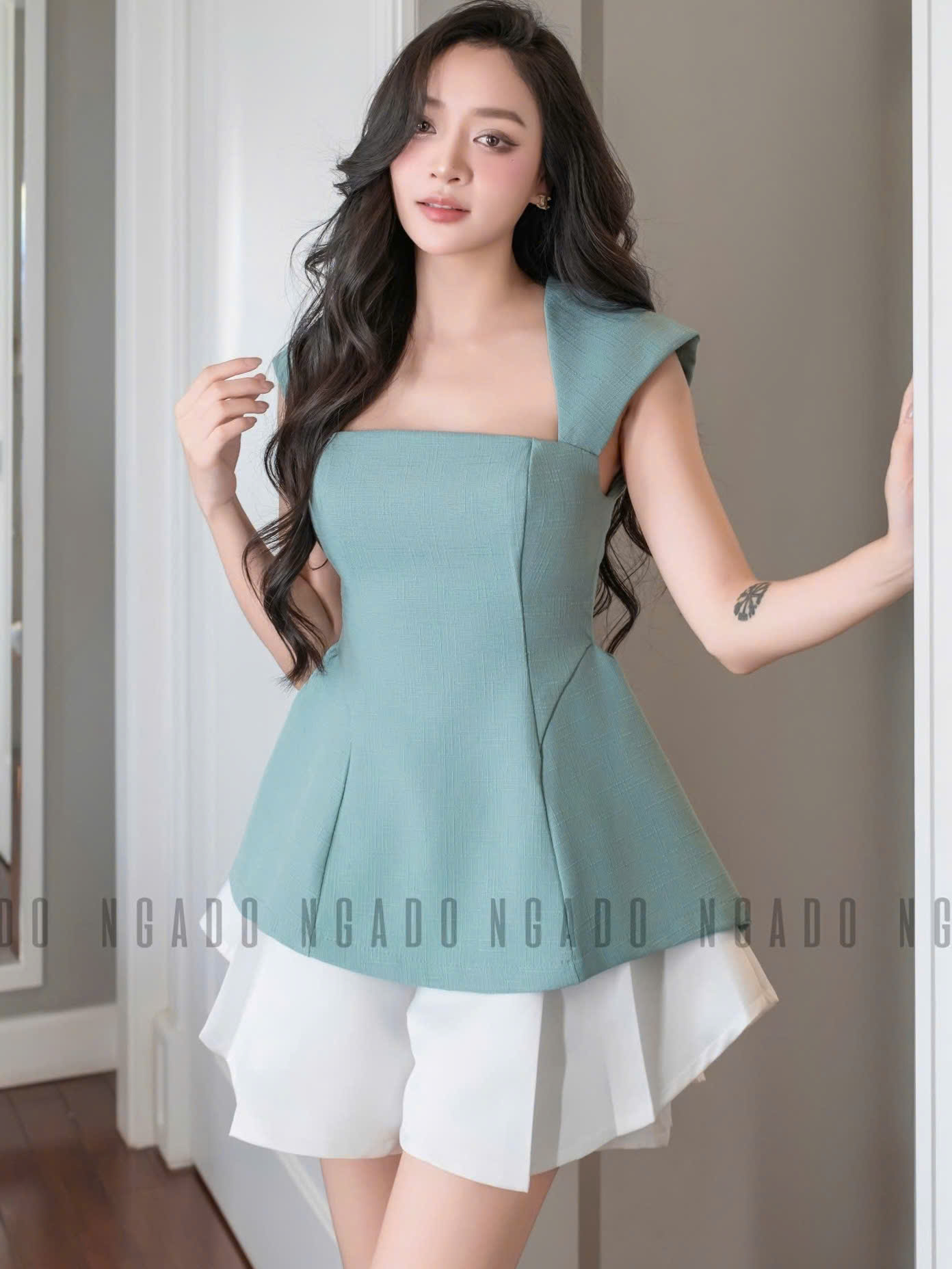 ✨Áo xanh mint chiết eo NGADO , áo kiểu , áo chiết eo
