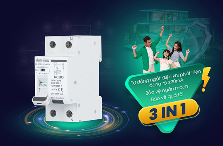 Aptomat RD.RCBO tích hợp 3 tính năng bảo vệ quá tải, bảo vệ ngắn mạch và tự động ngắt điện khi phát hiện dòng rò ≥30mA, bảo vệ an toàn cho người sử dụng, hệ thống điện, các thiết bị điện khỏi tình trạng quá tải và khi phát hiện dòng điện rò ra bên ngoài.