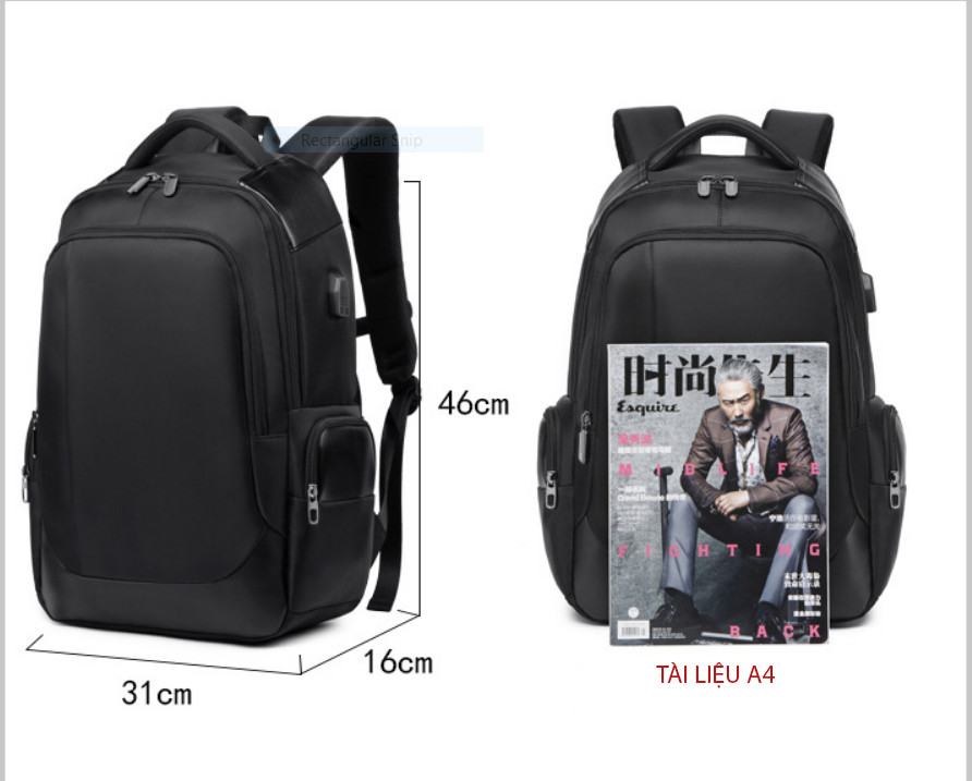 Balo Nylon 3551 – Chống Thấm, Sạc USB, Đựng Laptop 14 Inch | Đơn Giản Đô Thị