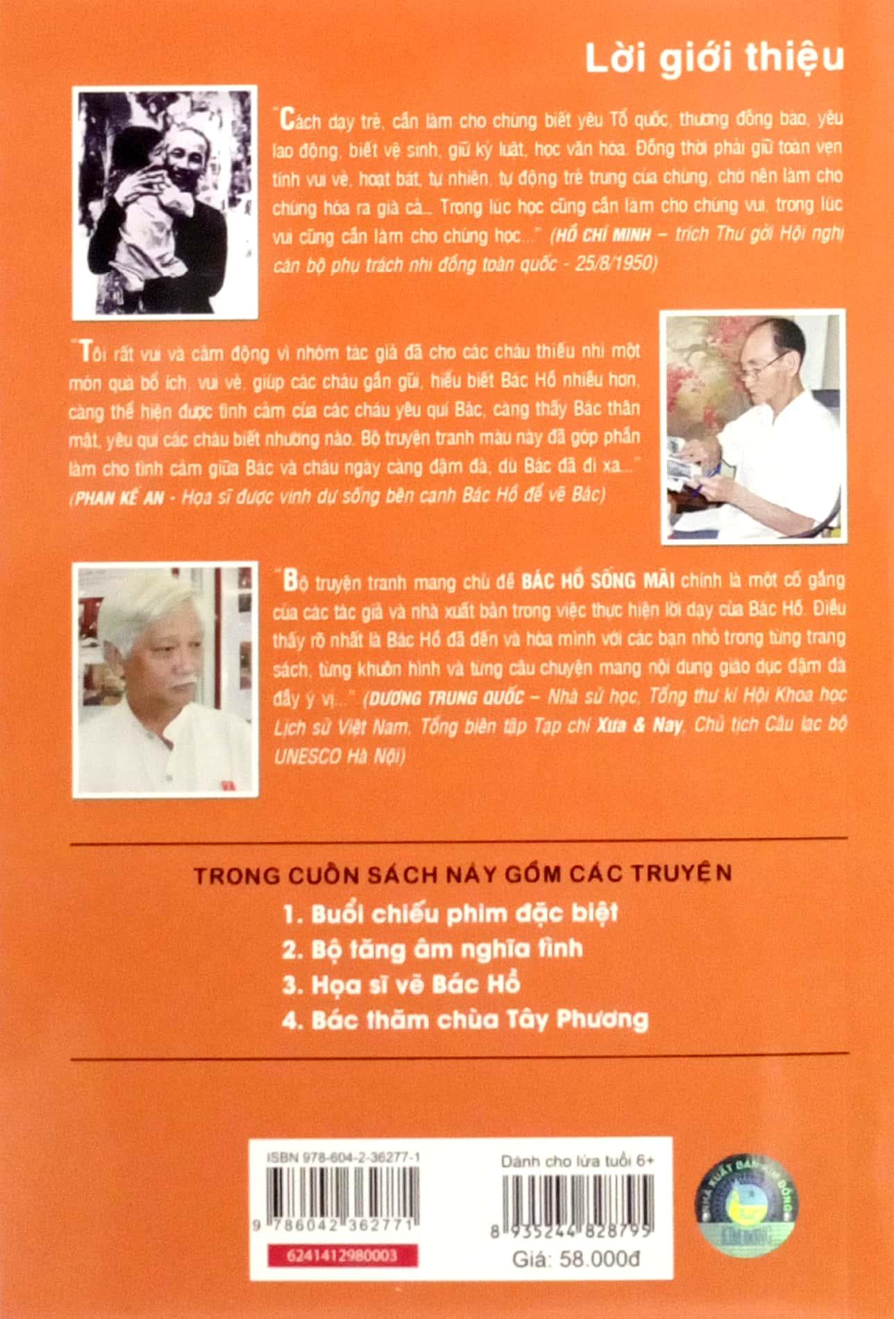 “Tôi rất vui và cảm động vì nhóm tác giả đã cho các cháu thiếu nhi một món quà bổ ích, vui vẻ, giúp các cháu gần gũi, hiểu biết Bác Hồ nhiều hơn, càng thể hiện được tình cảm của các cháu yêu quý Bác, càng thấy Bác thân mật, yêu quý các cháu biết nhường nào. Bộ tranh truyện màu này đã góp phần làm cho tình cảm giữa Bác và cháu ngày càng đậm đà, dù Bác đã đi xa…” (Phan Kế An – Họa sĩ được vinh dự sống và làm việc bên cạnh Bác Hồ để vẽ Bác)