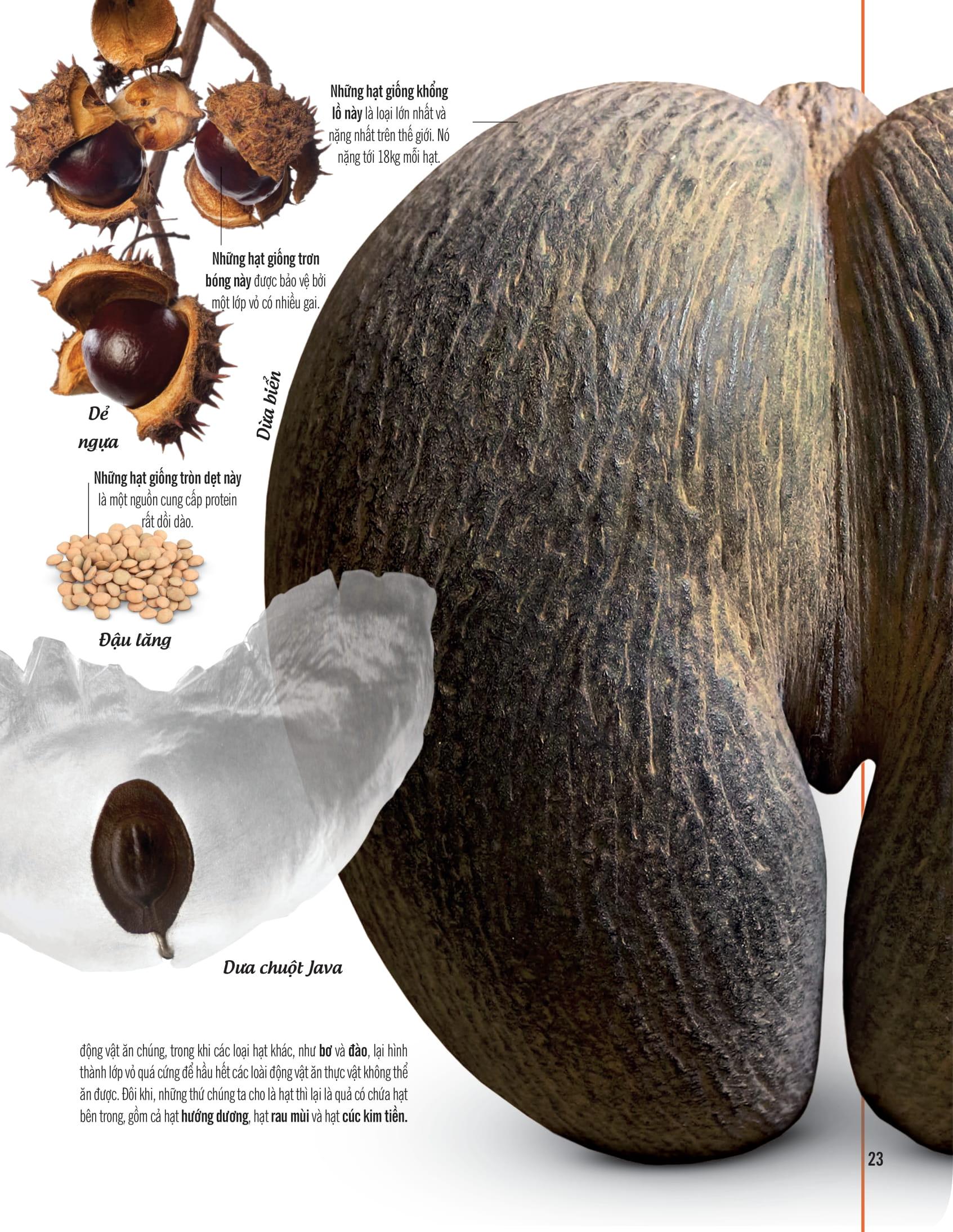 Trung thành với phong cách riêng biệt làm nên “thương hiệu” của DK, ấn phẩm này chứa đựng hơn 1.000 bức ảnh được chụp sắc nét, sống động, “soi” tường tận từng góc cạnh của các loại hoa, quả, hạt, cây (thậm chí là bổ dọc ra cho độc giả chiêm ngưỡng), kèm theo đó là những kiến thức độc đáo, hấp dẫn được tuyển chọn, kiểm chứng bởi Tiến sĩ Sarah Jose và Tiến sĩ Chris Clennett.