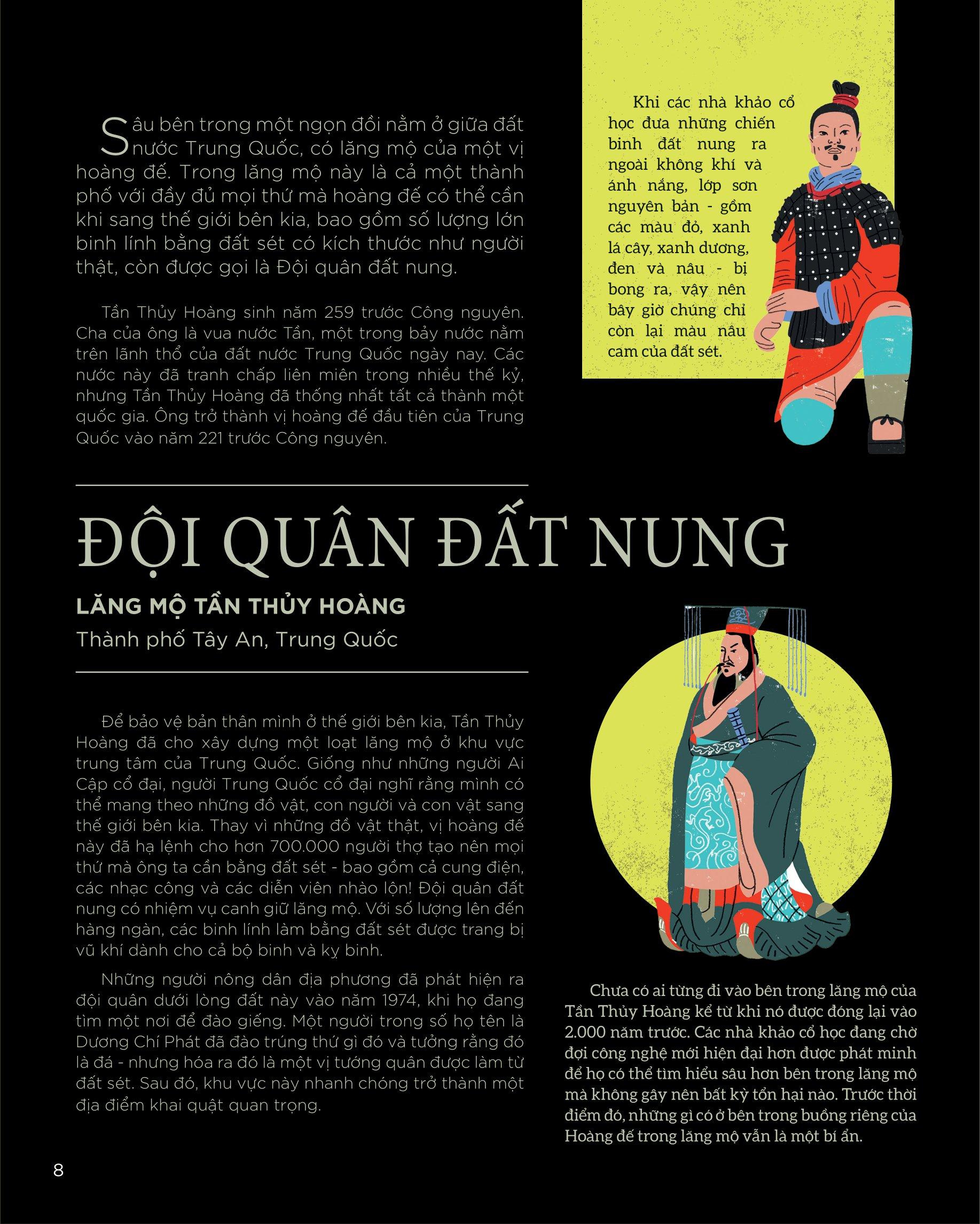 Nếu bạn là người yêu thiên nhiên, hãy tìm hiểu về loài mực ống khổng lồ hoặc quả trứng chim voi. Nếu bạn quan tâm đến lịch sử, hãy khám phá đội quân đất nung dưới lòng đất hoặc Cổng Ishtar, nơi đã từng chào đón các du khách đến với thành phố cổ Babylon. Còn nếu bạn đang ấp ủ ước mơ trở thành nhà khoa học, có thể bạn sẽ muốn nghiên cứu về mẫu máy bay cổ nhất. Dù sở thích của bạn là gì, bạn sẽ tìm thấy những vật kỳ diệu mà bạn yêu thích trong những trang sách này đấy.
