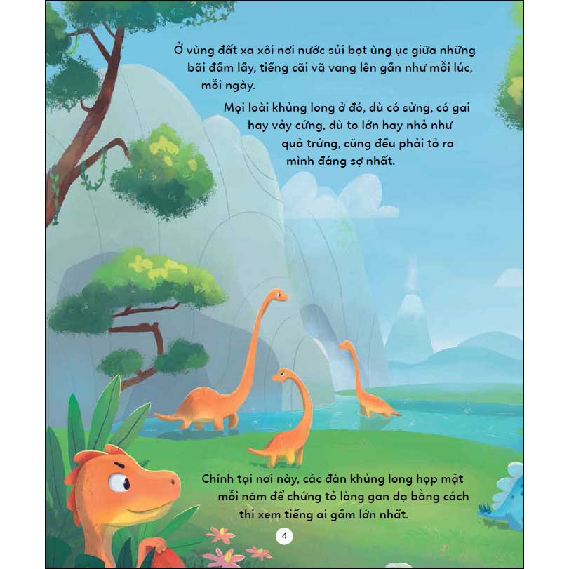 Ở khu rừng nọ, có chú khủng long Bronty thật khác biệt. Chú không biết gầm mà chỉ biết hát. Chú không mạnh mẽ, lúc nào cũng sợ hãi tiếng sấm. Bronty từng cảm thấy tự ti và cố gắng để gầm gừ thật dũng mãnh như các bạn, nhưng rồi chú nhận ra, việc cố tỏ ra mạnh mẽ chẳng mang lại ý nghĩa gì.