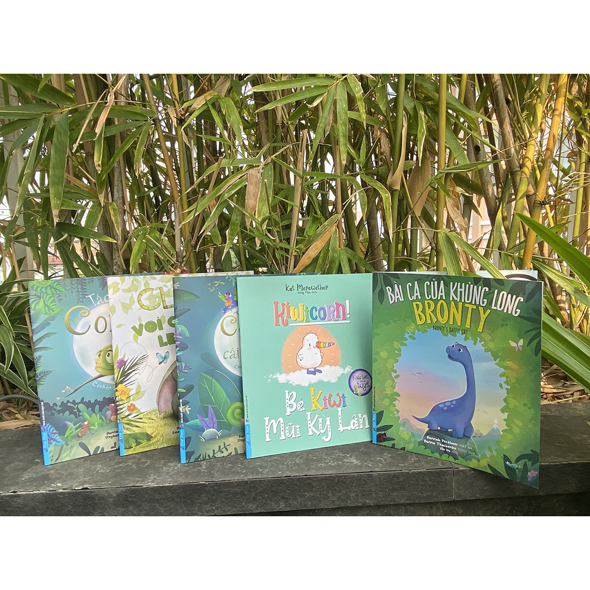 Bộ truyện gồm 5 tập: “Tắc kè hoa Conker”, “Tắc kè hoa Conker và cái bẫy khỉ”, “Voi con học leo cây”, “Bé Kiwi mũi kỳ lân” và “Bài ca của khủng long Bronty” sẽ dẫn dắt các bé đi vào hành trình khám phá giá trị bản thân cùng các bạn động vật nhỏ trong khu rừng rộng lớn.
