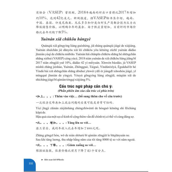 Đây là cuốn sách với tuyển tập các bài tập luyện dịch từ cơ bản đến nâng cao, phù hợp với các đối tượng bắt đầu học tiếng Trung với phần 1 "BÀI TẬP DỊCH TRUNG VIỆT-VIỆT TRUNG CỦNG CỐ CẤU TRÚC CỐ ĐỊNH & NGỮ PHÁP (Dựa theo ngữ pháp tiếng Hán Sơ trung cấp hiện đại", còn các đối tượng đã học đến HSK5-6 vẫn hoàn toàn có thể sử dụng để nâng cao kỹ năng biên dịch cũng như phục vụ cho phiên dịch với phần 2 "BÀI TẬP DỊCH NÂNG CAO KỸ NĂNG DỊCH VÀ TĂNG CƯỜNG CẤU TRÚC DỊCH NÂNG CAO (Có cung cấp cấu trúc và sử dụng).