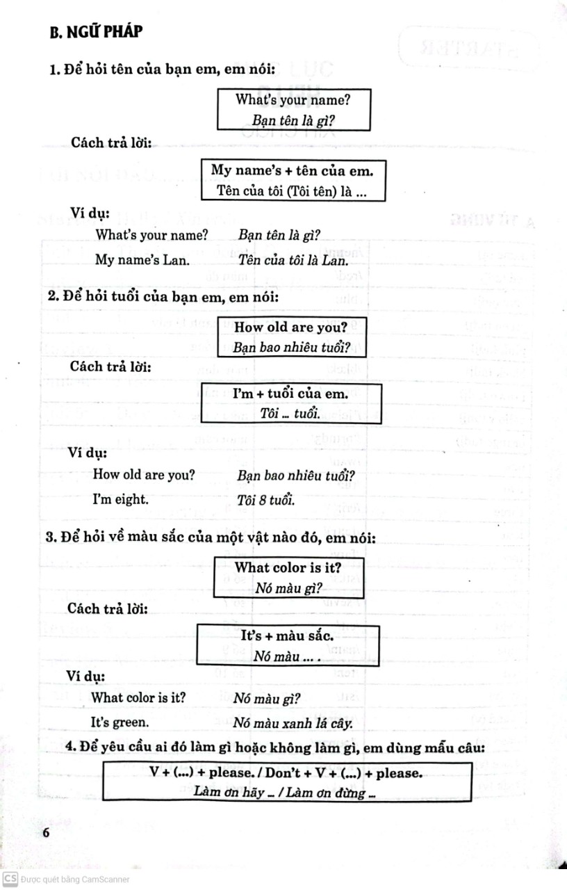 Với các phần Từ vựng và Ngũ pháp, các em sẽ được ôn lại các từ vựng và mâu cầu đã học trong bài, sau đó ứng dụng các từ vựng và mẫu câu đó