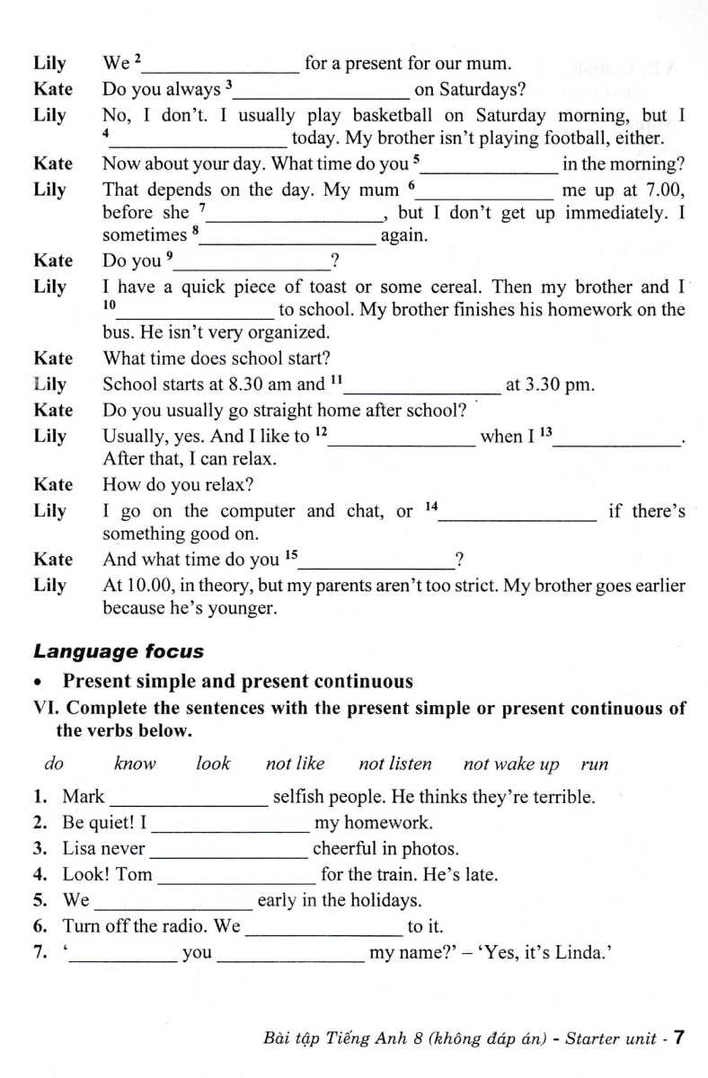 Các bài tập trong Bài tập Tiếng Anh 8 – Không đáp án đa dạng, phong phú, bám sát từ vựng, ngữ pháp và chủ đề trong sách giáo khoa tiếng Anh theo chương trình mới.