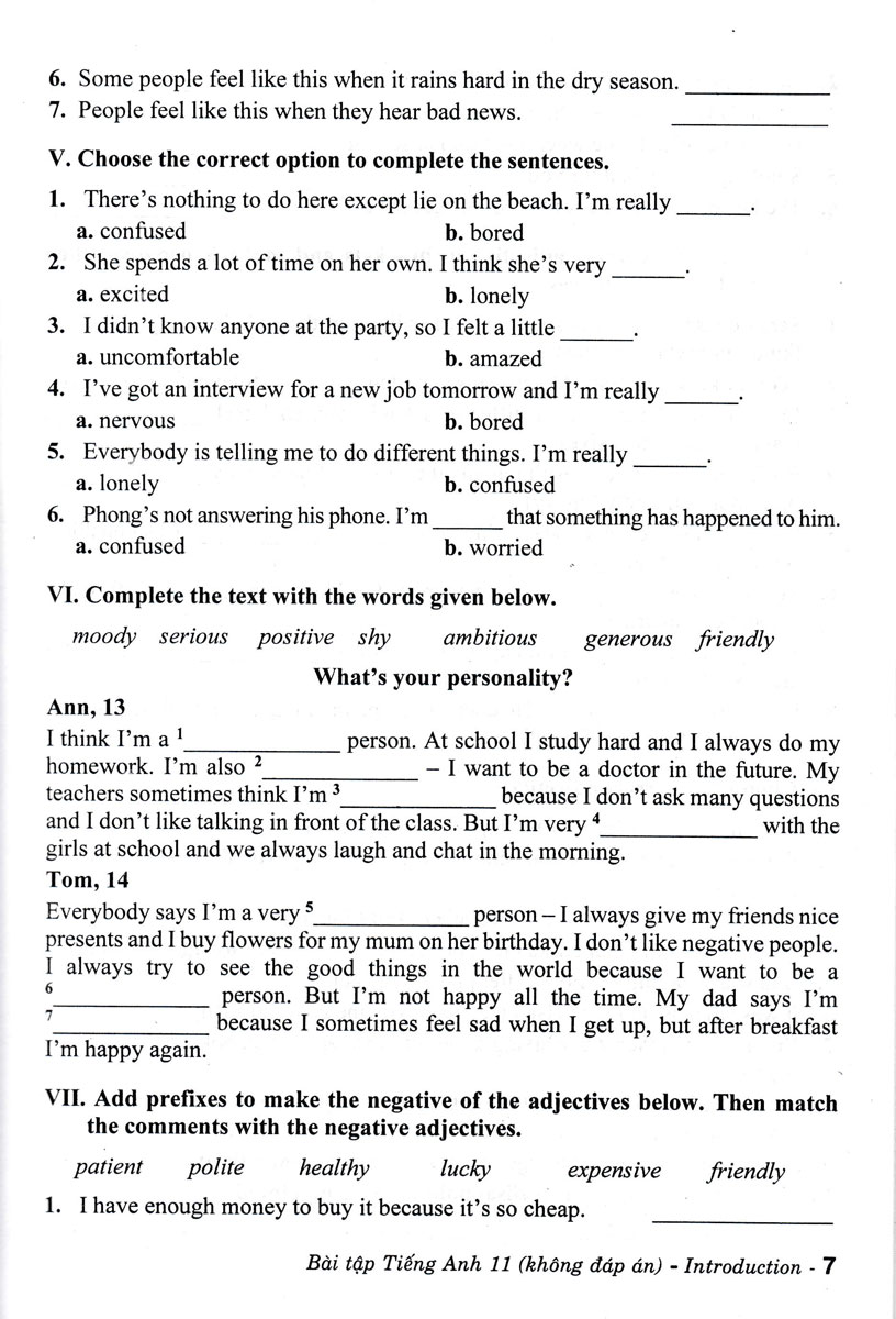 Các bài tập trong Bài tập Tiếng Anh 11 – Không đáp án đa dạng, phong phú, bám sát từ vựng, ngữ pháp và chủ đề trong sách giáo khoa tiếng Anh theo chương trình mới.