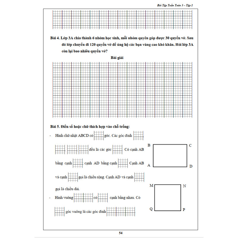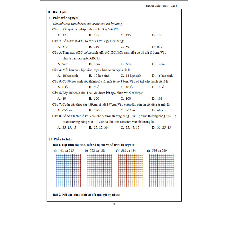 Bài Tập Tuần Toán 3 - Tập 1 được biên soạn theo tuần dựa trên nội dung bộ sách giáo khoa giáo khoa hiện hành lớp 3.