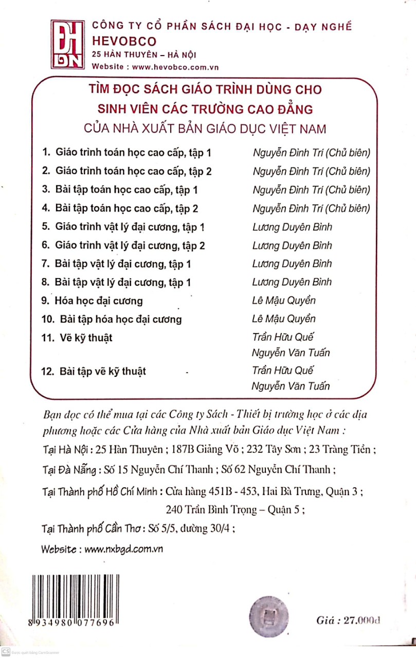 Cuốn Bài tập vẽ kỹ thuật cùng với cuốn Vẽ kỹ thuật làm thành một bộ sách dùng trong các trường Cao đẳng kỹ thuật công nghiệp. Sách bài tập gồm 7 chương tương ứng với các chương của sách Vẽ kỹ thuật. Có ba loại bài tập như sau: – Bài tập ứng dụng, gồm nhiều bài tập nhỏ vận dụng các phương pháp vẽ cơ bản, giải quyết từng vấn đề riêng lẻ, nhằm củng cố các kiến thức cơ bản. Để không mất thời gian vẽ lại hình, các lời giải của loại bài tập này có thể vẽ trực tiếp lên hình đã in sẵn. – Bài tập thực hành, gồm 5 bài là loại bài tập cần vận dụng các kiến thức của một hay nhiều chương. Mỗi bài tập gồm các phần : + Mục đích + Nội dung + Hướng dẫn + Đề bài Mỗi sinh viên làm một đề do giảng viên chỉ định. Bài tập được làm trên giấy vẽ khổ A4 hoặc A3, trình bày theo các quy định của tiêu chuẩn bản vẽ và vẽ bằng dụng cụ vẽ. – Bài tập CAD, gồm 4 bài : vẽ hình phẳng, vẽ hình hai chiều, vẽ chi tiết và vẽ lắp. Bài tập được làm trên máy vi tính. Số lượng bài tập nhiều, đa dạng, nội dung phong phú. Tuỳ theo chương trình đào tạo quy định cho từng trường, từng ngành khác nhau mà lựa chọn cho phù hợp. Cuốn Bài tập Vẽ kỹ thuật này cùng với cuốn Vẽ kỹ thuật được sử dụng làm tài liệu giảng dạy và học tập trong các trường Cao đẳng kỹ thuật. Nó cũng có thể dùng làm tài liệu học tập cho sinh viên các ngành khác trong các trường Đại học kỹ thuật và dùng làm tài liệu tham khảo cho các cán bộ kỹ thuật. Phần bài tập CAD do giảng viên chính Nguyễn Văn Tuấn viết, các phần còn lại do Phó Giáo sư Trần Hữu Quế viết. Để viết cuốn bài tập này, các tác giả đã tham khảo nhiều tài liệu có liên quan. Danh mục các tài liệu tham khảo chính được ghi ở phần cuối sách. Trong quá trình biên soạn, chúng tôi đã được sự giúp đỡ của Ban biên tập