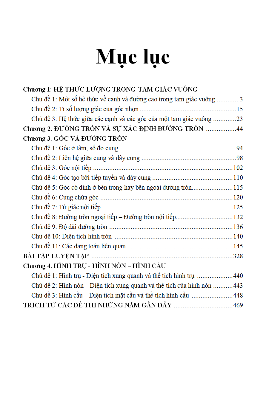 Trong quyển sách Bài Toán Qua Các Kì Thi Học Sinh Giỏi Và Luyện Thi Vào Lớp 10 Chuyên Hình Học 9, chúng tôi chia theo từng chương học trong chương trình hiện hành: