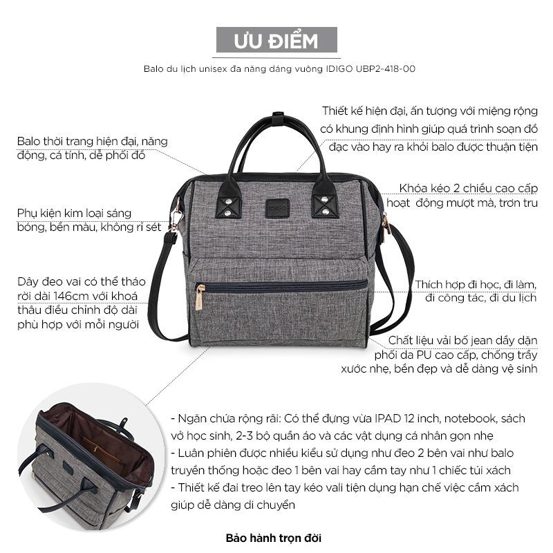 Với chiếc balo dáng vuông độc đáo lại rất hữu dụng ắt hẳn sẽ khiến cho các tín đồ yêu thời trang phải siêu lòng ngay từ ánh nhìn đầu tiên. Đáp ứng nhu cầu này, IDIGO cho ra mắt Balo nữ đa năng dáng vuông IDIGO UBP2-418-00. Hãy cùng IDIGO khám phá những điều đặc biệt mà mẫu balo này mang lại nhé!