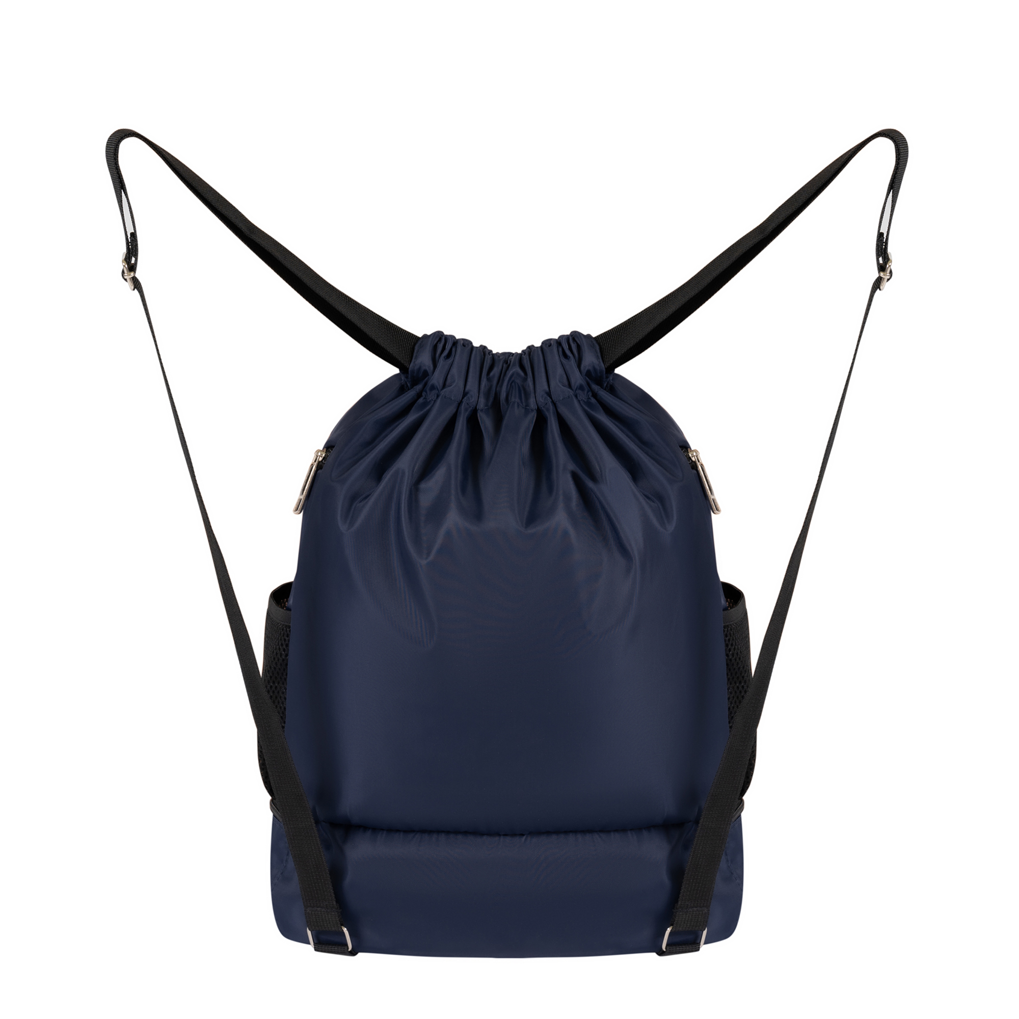 Công năng: Ngăn chứa đồ rộng rãi,có ngăn đựng giày riêng, dây rút tiện lợi, khóa kéo bền bỉ, trơn tru, tính thẩm mỹ cao. Mặt sau: