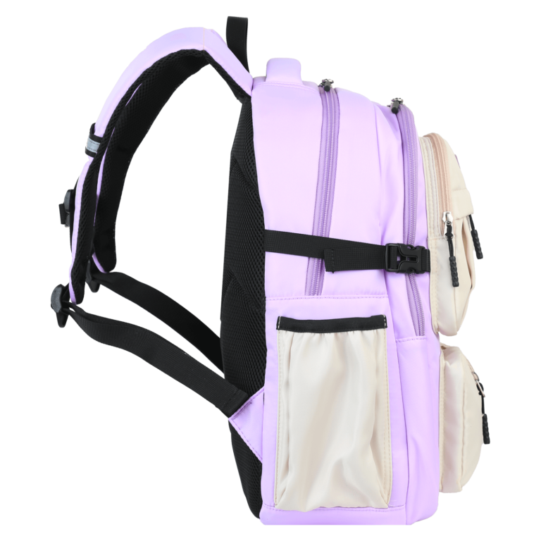 Mặt bên của balo là 1 ngăn vải phụ có bo chun và 1 túi hộp được thiết kế khóa kéo kín đáo để bạn có thể đựng bình nước, dù đi mưa mà không sợ rơi ra khi di chuyển.