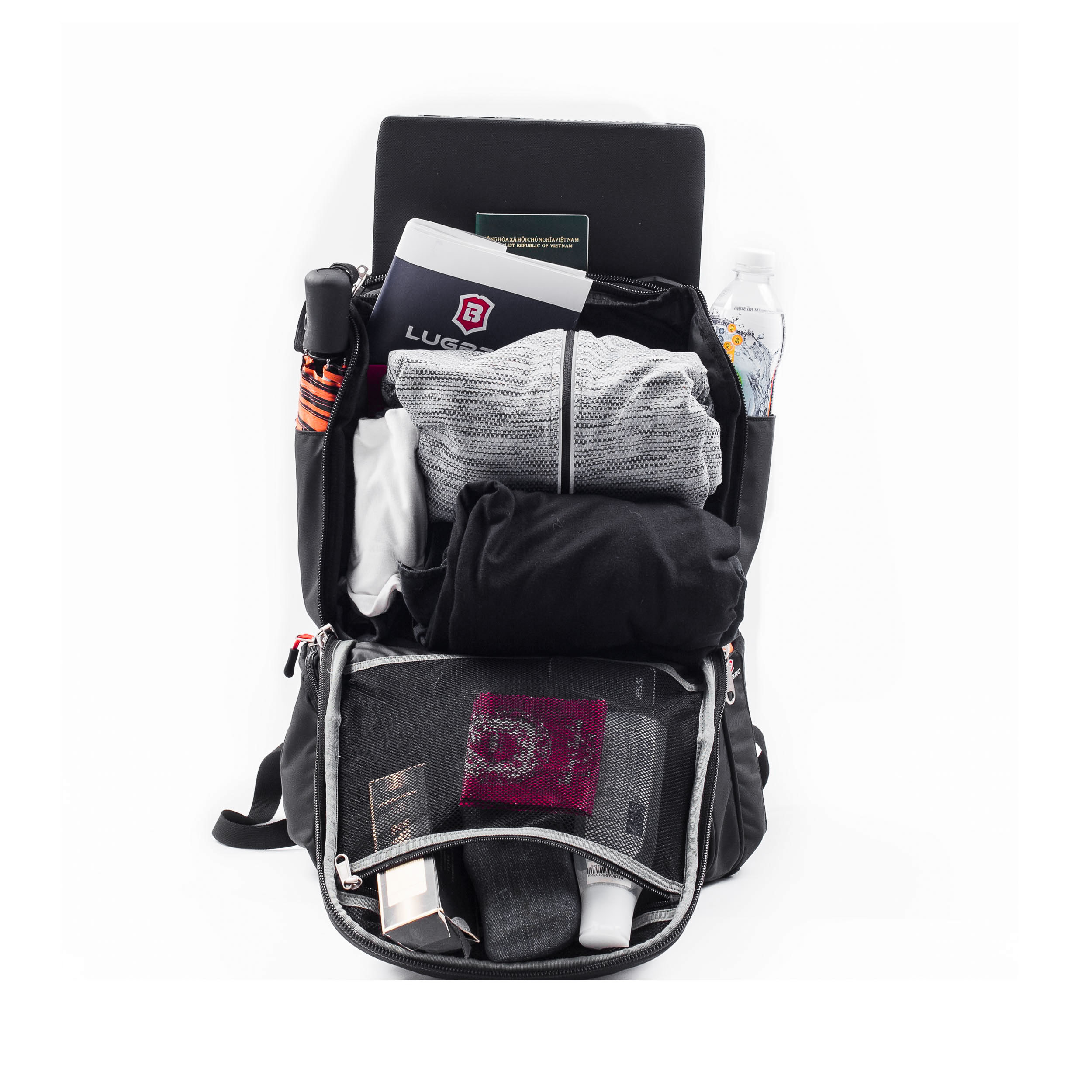 Ba lô laptop đa chức năng 2 in 1 LUGBRO GAMING có 11 ngăn chứa, có thể được sử dụng như 1 vali thu gọn cực kì lý tưởng dùng trong các chuyến công tác và các chuyến hành trình du lịch.