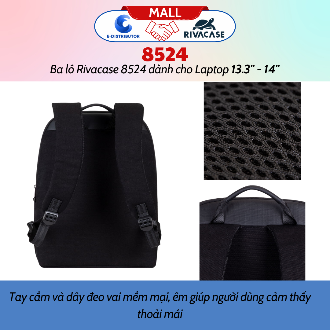 • Ngoài ra, Rivacase 8524 có thêm túi có khóa kéo phía trước thích hợp dành cho smartphone, danh thiếp, phụ kiện và dây treo chìa khóa có thể tháo rời