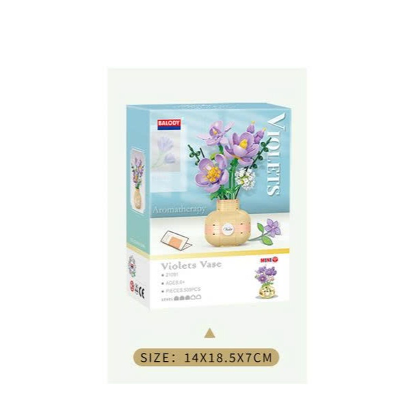 ✨BALODY - 21091 Bộ xếp hình bình hoa Violet (539 chi tiết) (KT 14x18.5x7cm)