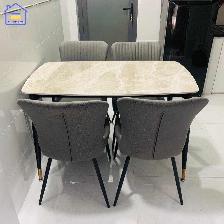✨Bàn ăn mặt đá ceramic bóng kết hợp ghế royal, bàn ăn mặt đá 4 ghế 6 ghế 8 ghế
