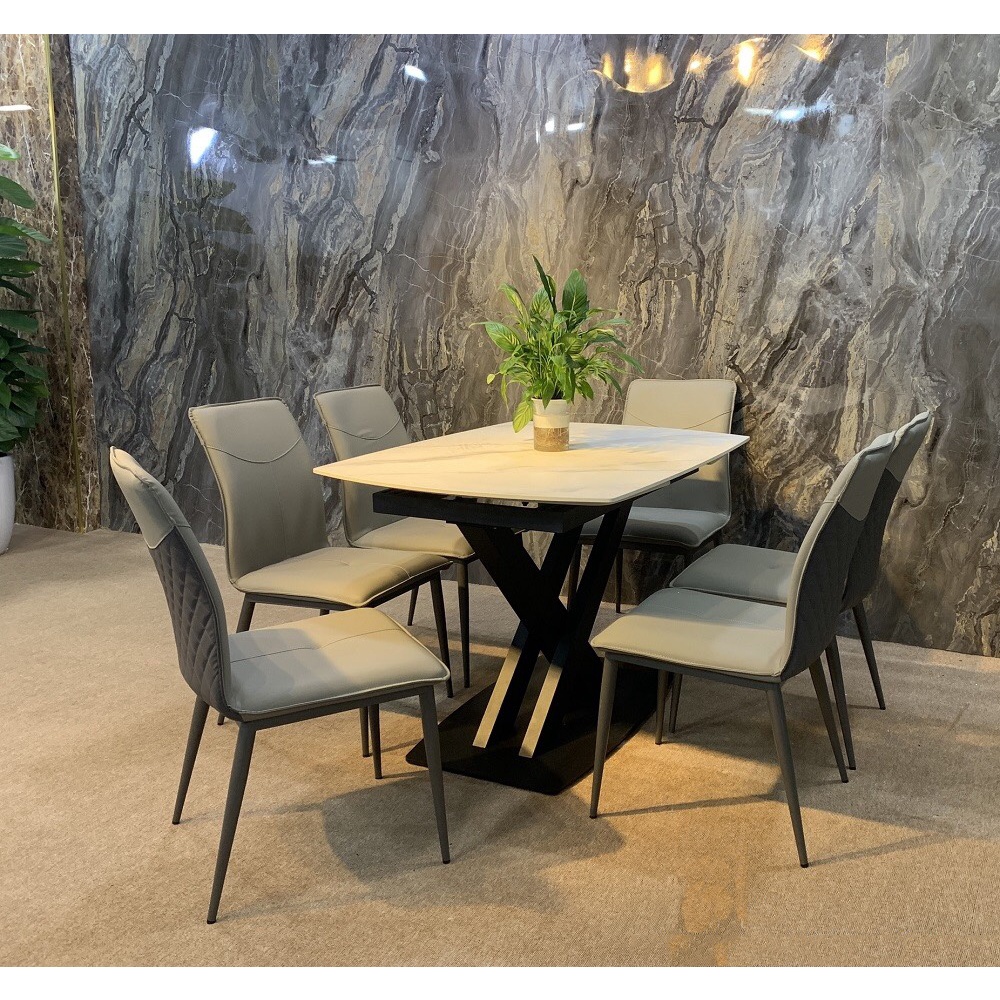 Bàn ăn mặt đá phiến xoay kéo dài 1m8 kết hợp ghế Apolo, Bàn ăn mặt đá 6 ghế 8 ghế