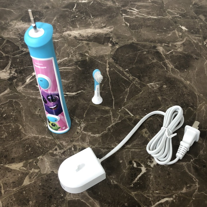 - Sản phẩm bao gồm: Thân bàn chải × 1, Đầu bàn chải × 2, Sạc × 1, Stickers × 8