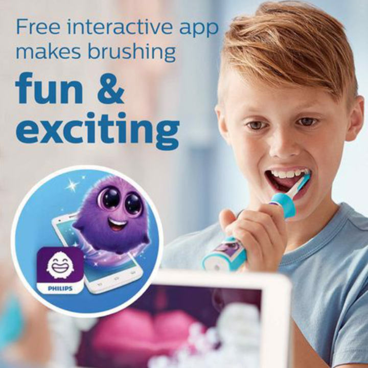 Bàn chải đánh răng điện trẻ em Philips Sonicare HX6352/43 hỗ trợ Bluetooth kết nối với ứng dụng và giúp trẻ từ từ tăng thời gian đánh răng - HÀNG NHẬP KHẨU Bàn chải điện