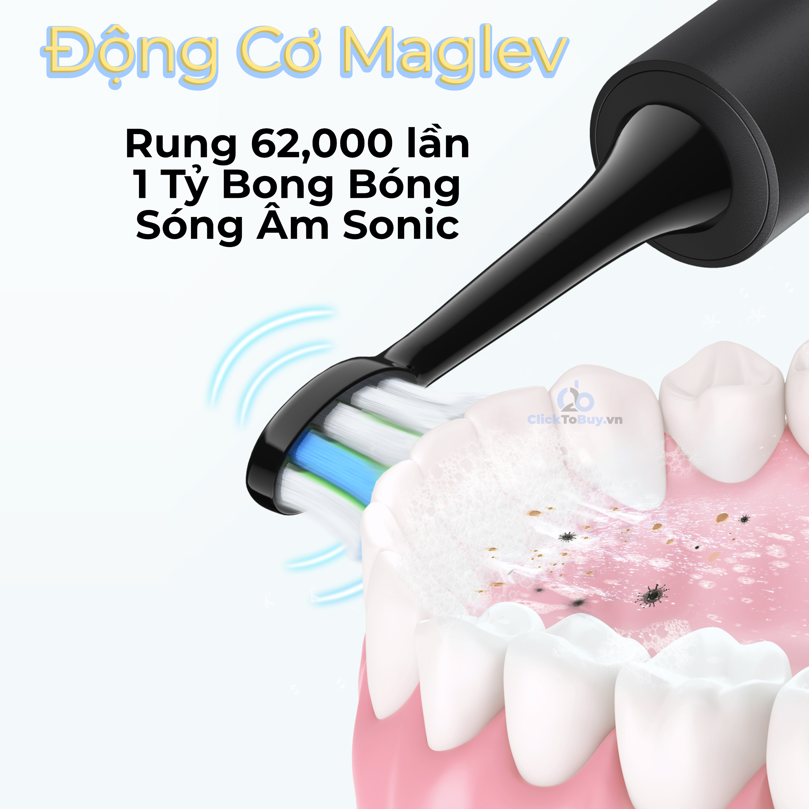 - Rung 40,000 lần 1 phút, đủ mạnh để đánh tan mảng bám cứng đầu nhất mà bàn chải thông thường không thể làm được