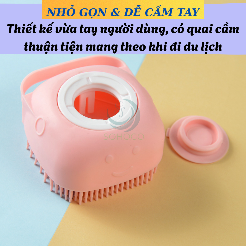 - Gai silicon mềm mại: Làm sạch sâu lỗ chân lông, loại bỏ tế bào chết, kích thích tuần hoàn máu, hỗ trợ thư giãn cơ thể khi tắm.